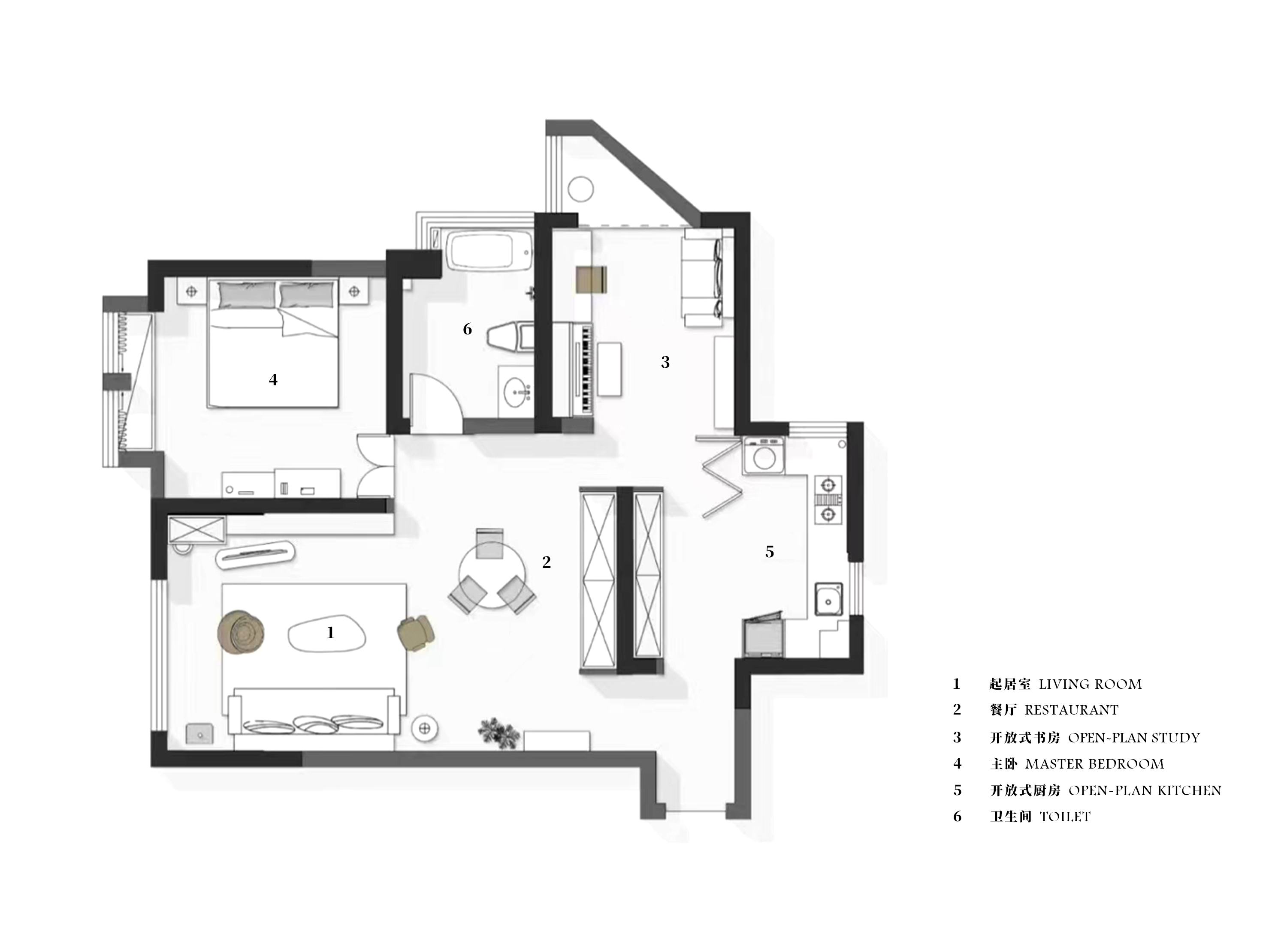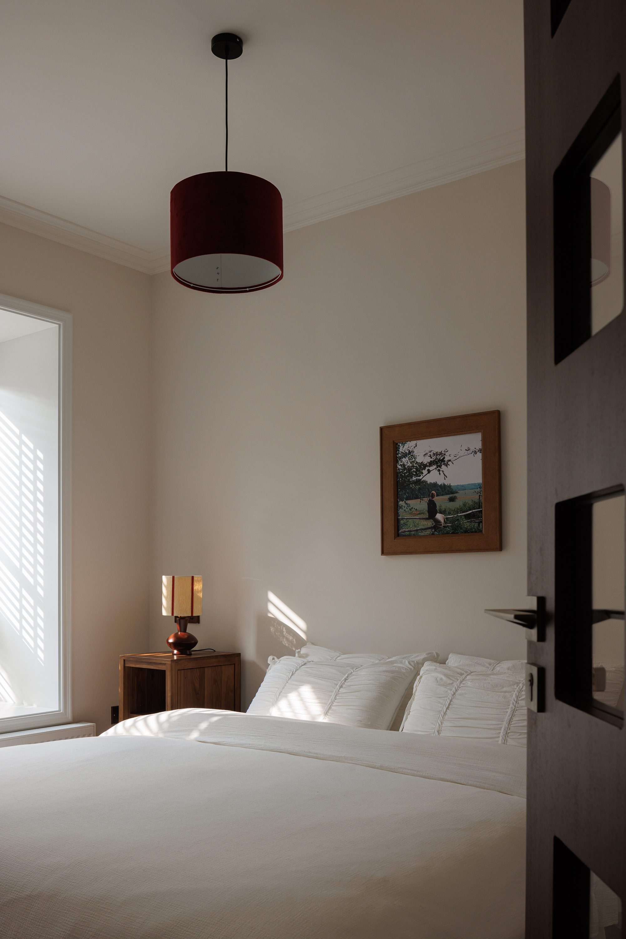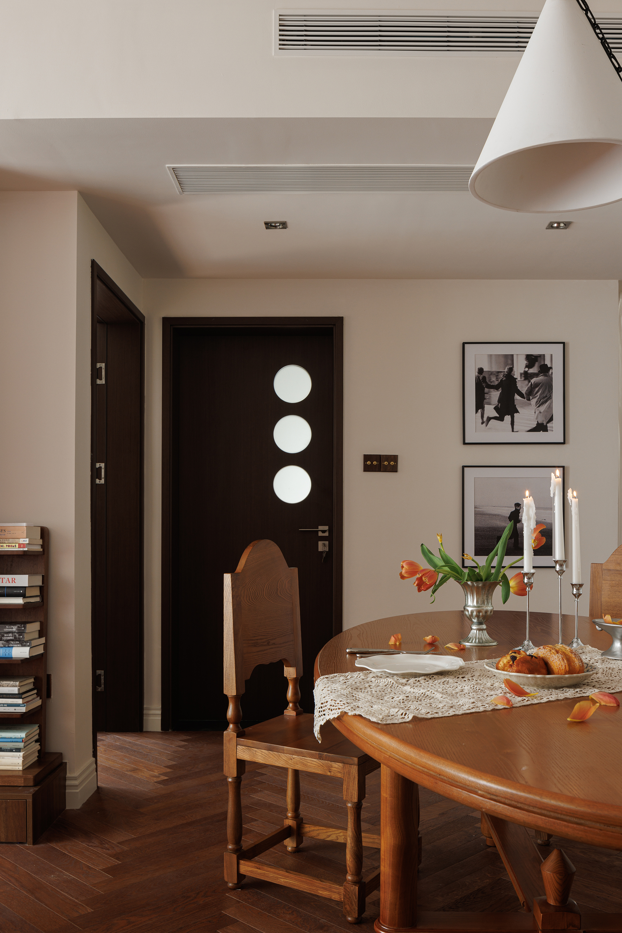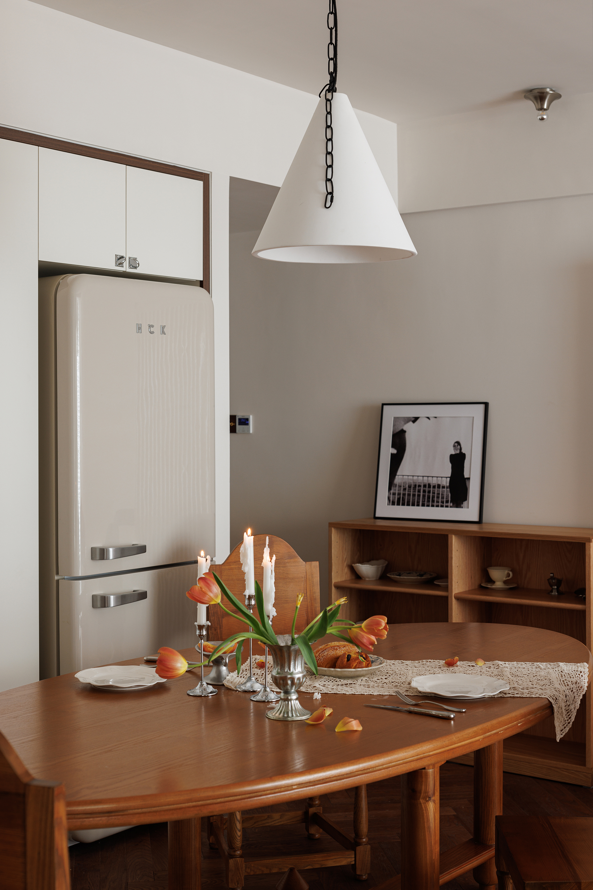 As a film director, Luo Luo possesses a unique and niche inner world. She cherishes the authentic charm and slow pace of life in the old town district, hoping her home would be warm in her future. Choosing a design featuring clashing colors, American style fused with mid-century modern, the traditional two rooms two hall layout of the old district residence was transformed. It became an open-plan one rooms one hall layout with a circular flow connecting the living-dining room, kitchen, study, and bedroom. Each space is distinct yet interconnected, the home's sense of openness and brightness.