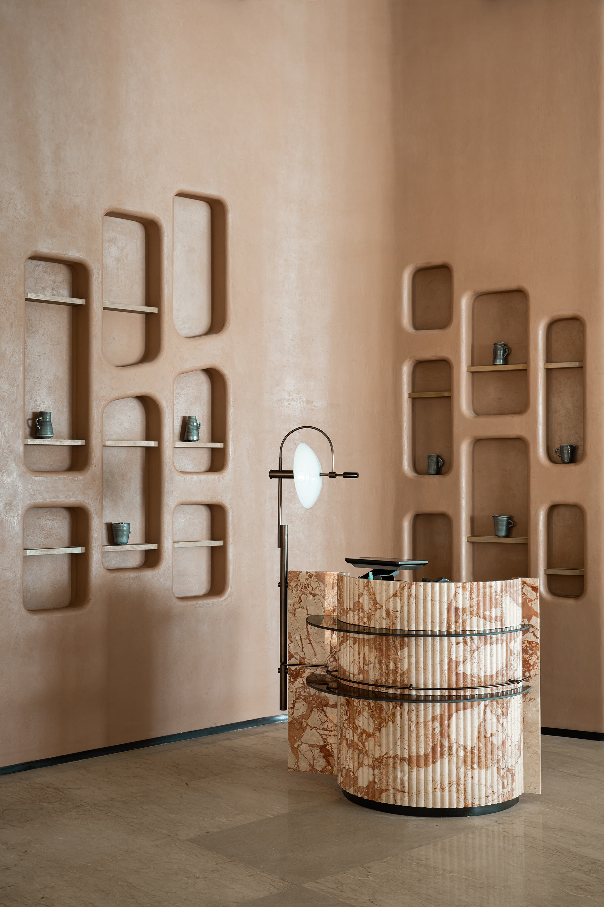新潮灵动的大堂里,颗颗珍珠灯串联起圆形与S形艺术光晕,如海面跃动的遥远月光。造型拙朴的大理石接待台、旧船木格栅、棉麻肌理的弧形沙发……致敬疍家人海上生活故事。两处L形水景环绕,潺潺水声送来惬意的静谧。
