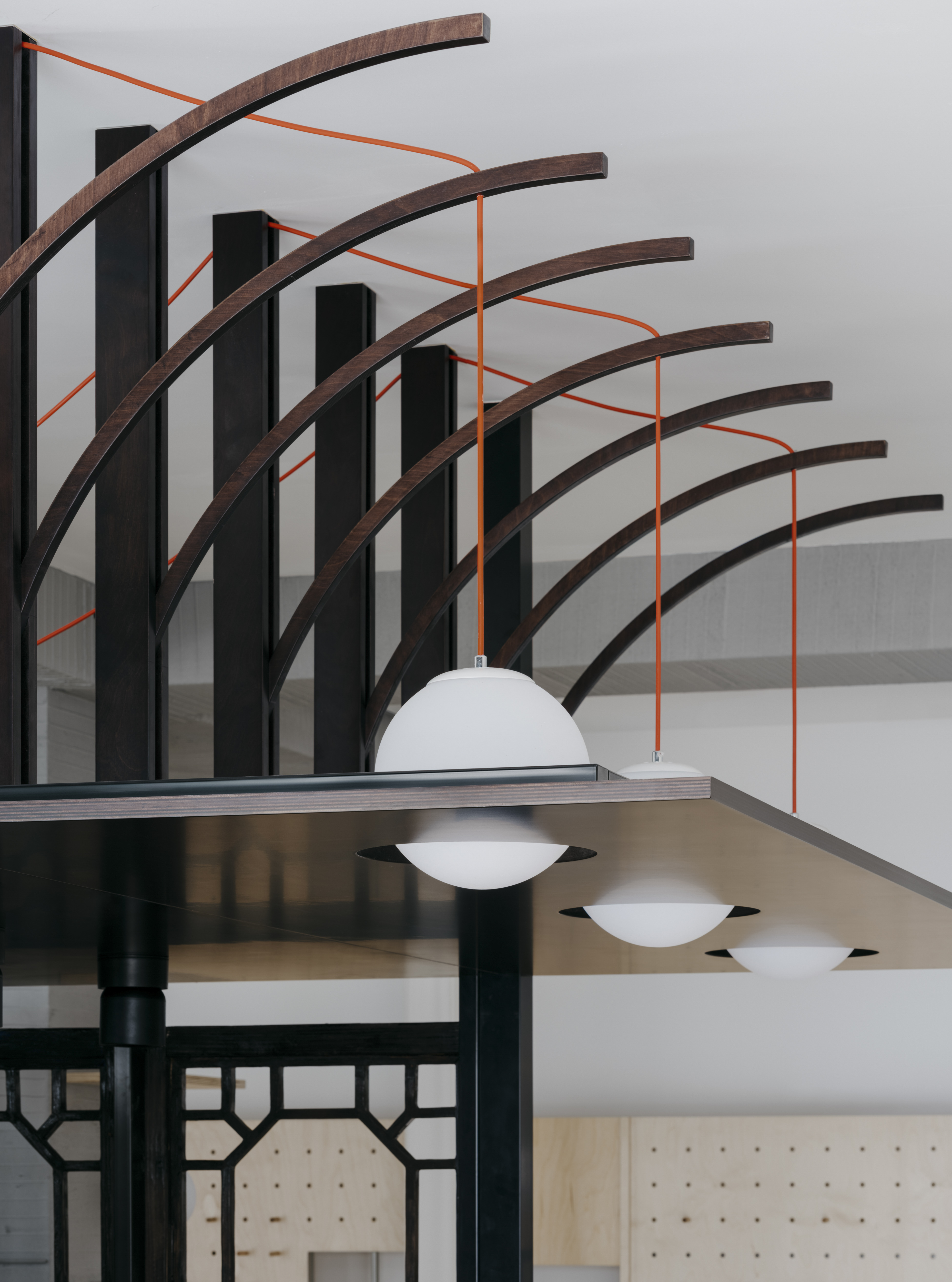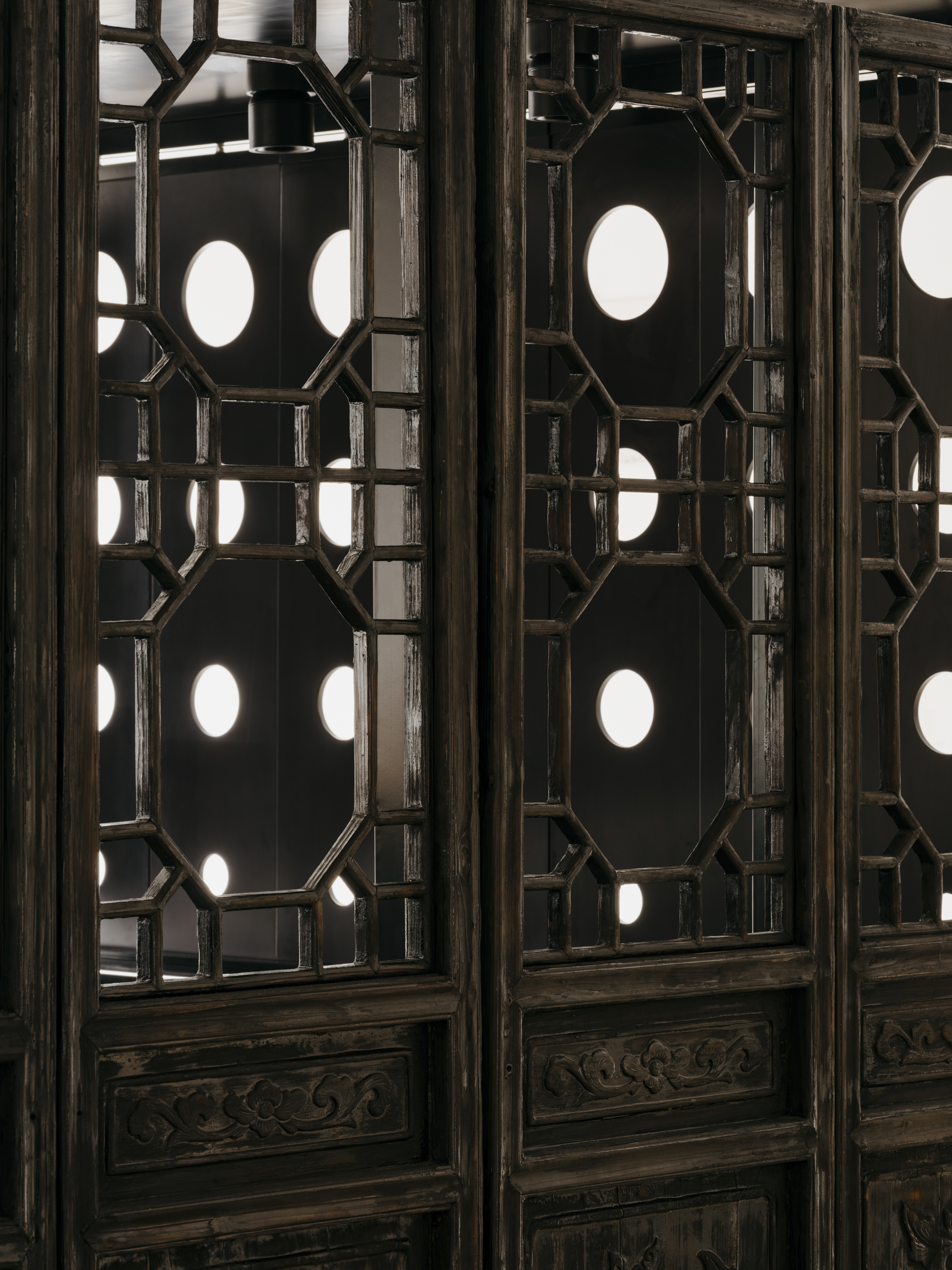 材料在传统与当代之间建立可感知的连接:回收木门经炭化处理,保留原雕花窗板,南立面穿孔图案源自堂名担的几何节奏。项目不仅重塑了空间的文化身份,也探索了社区语境下非遗教育的可持续路径与边缘公共空间的再生潜力。