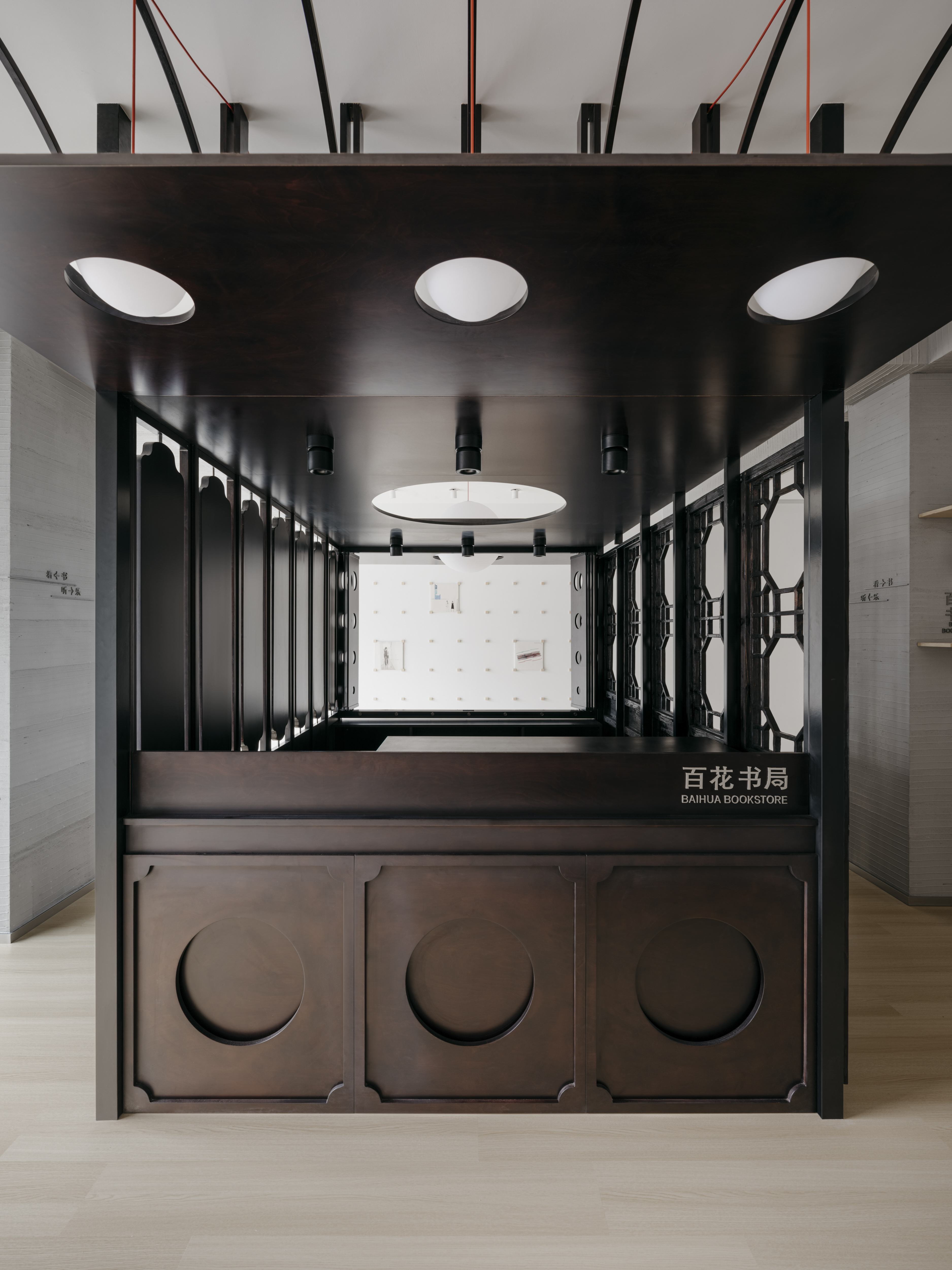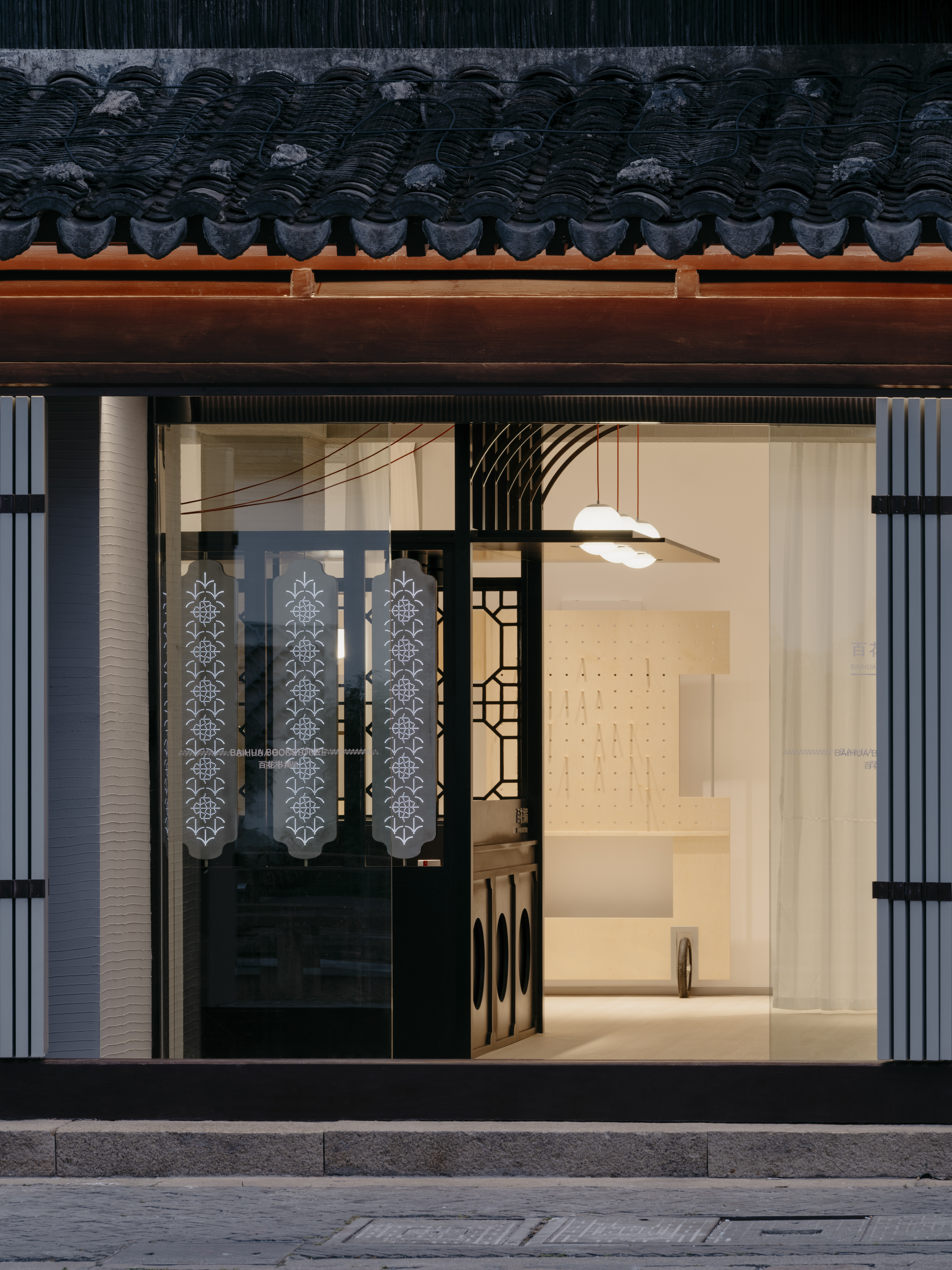 Located in the China Kunqu Opera Museum, Baihua Bookstore began as a reading room but had faded into an exit corridor. Guided by minimal intervention, spatial adaptability, and cultural translation, Tsing-Tien Making reimagined it through the Tangmingdan, a traditional portable Kunqu stage, creating a flexible cultural venue. A central pavilion with varied façades integrates movable displays, modular signage, and retractable curtains, enabling the space to shift into a micro-stage for events. Reclaimed wood and patterns from the Tangmingdan bridge past and present, while supports sustainability. This lightweight renewal reactivates cultural identity and offers a sustainable model for intangible heritage education in a community context.
