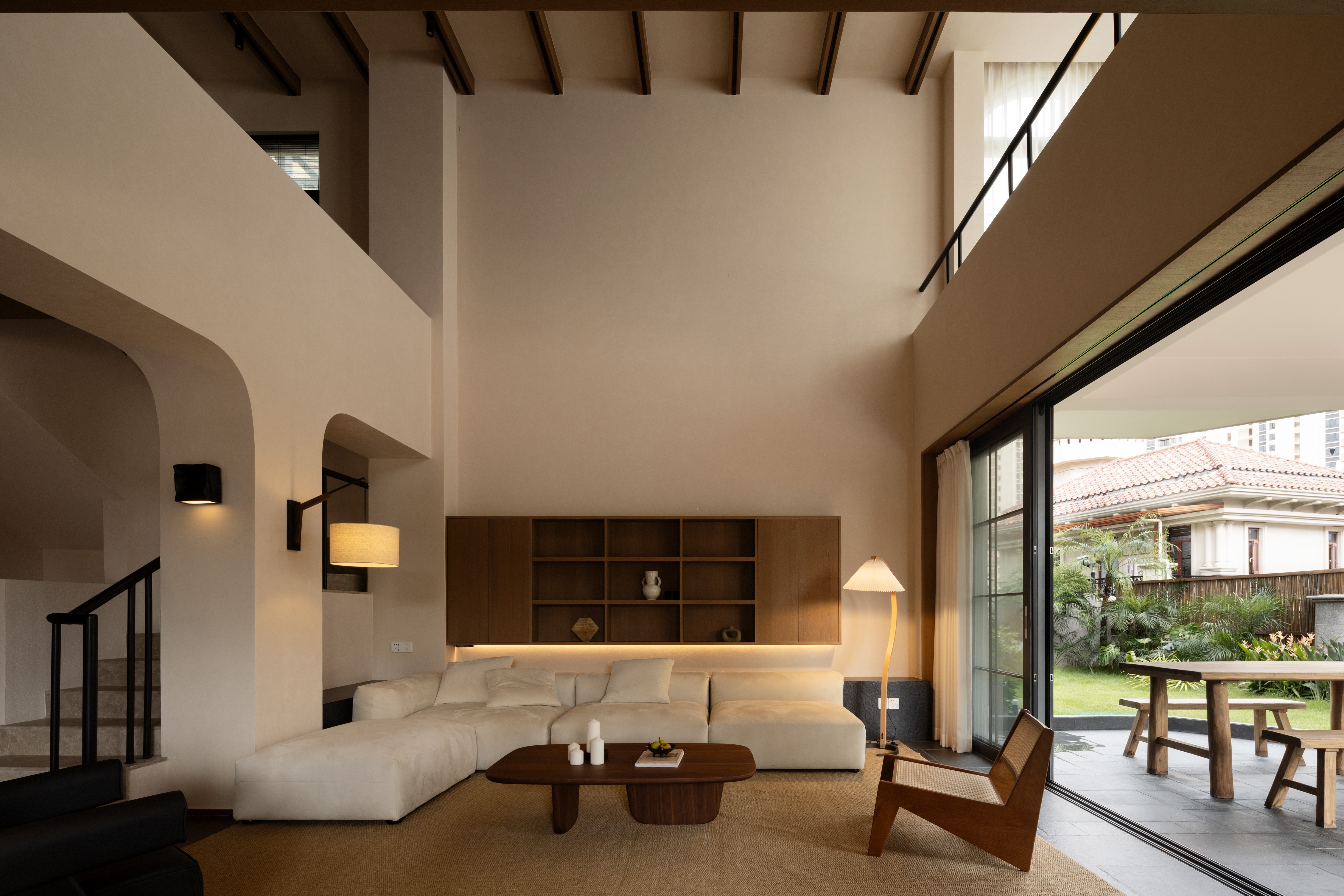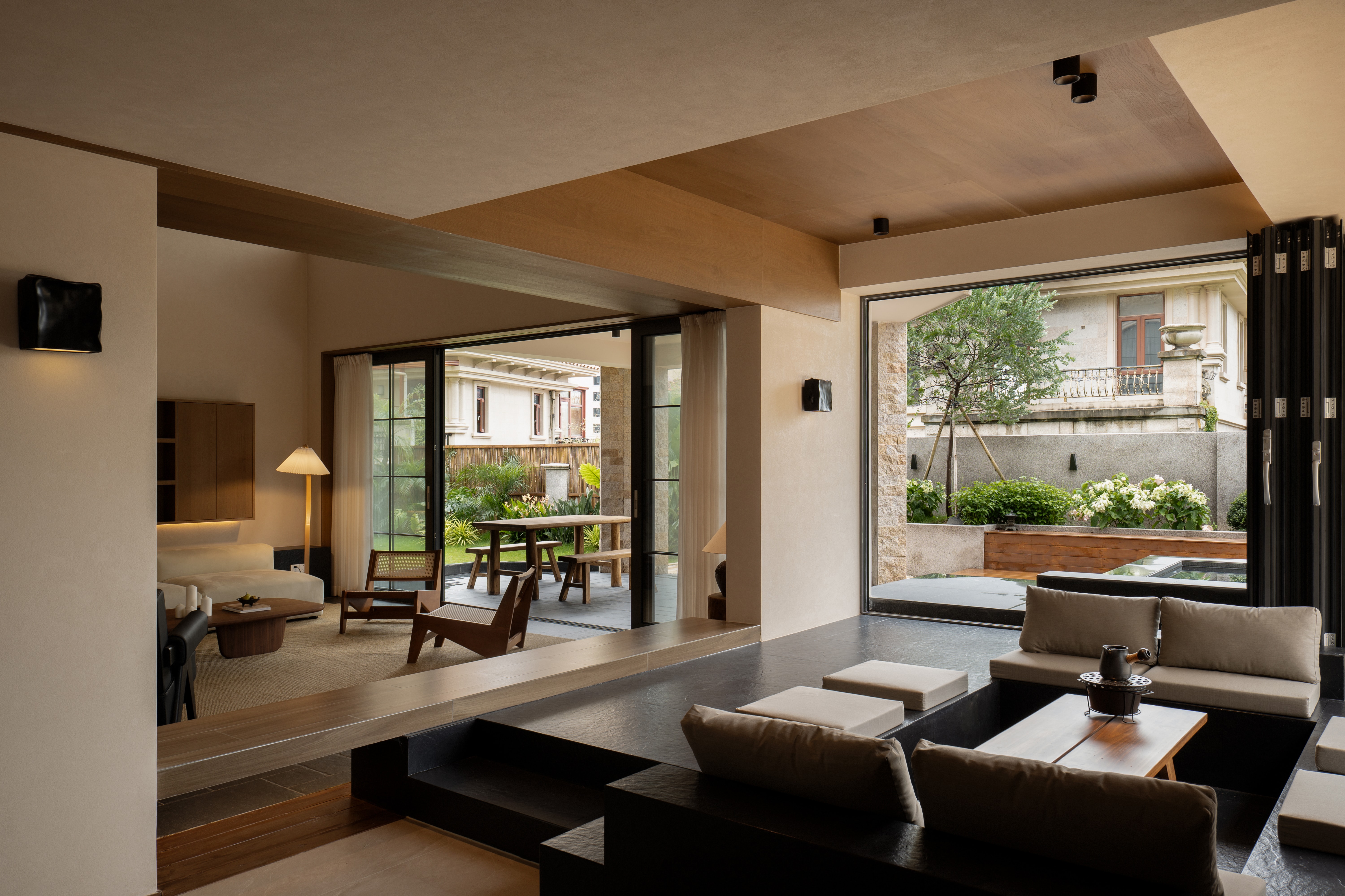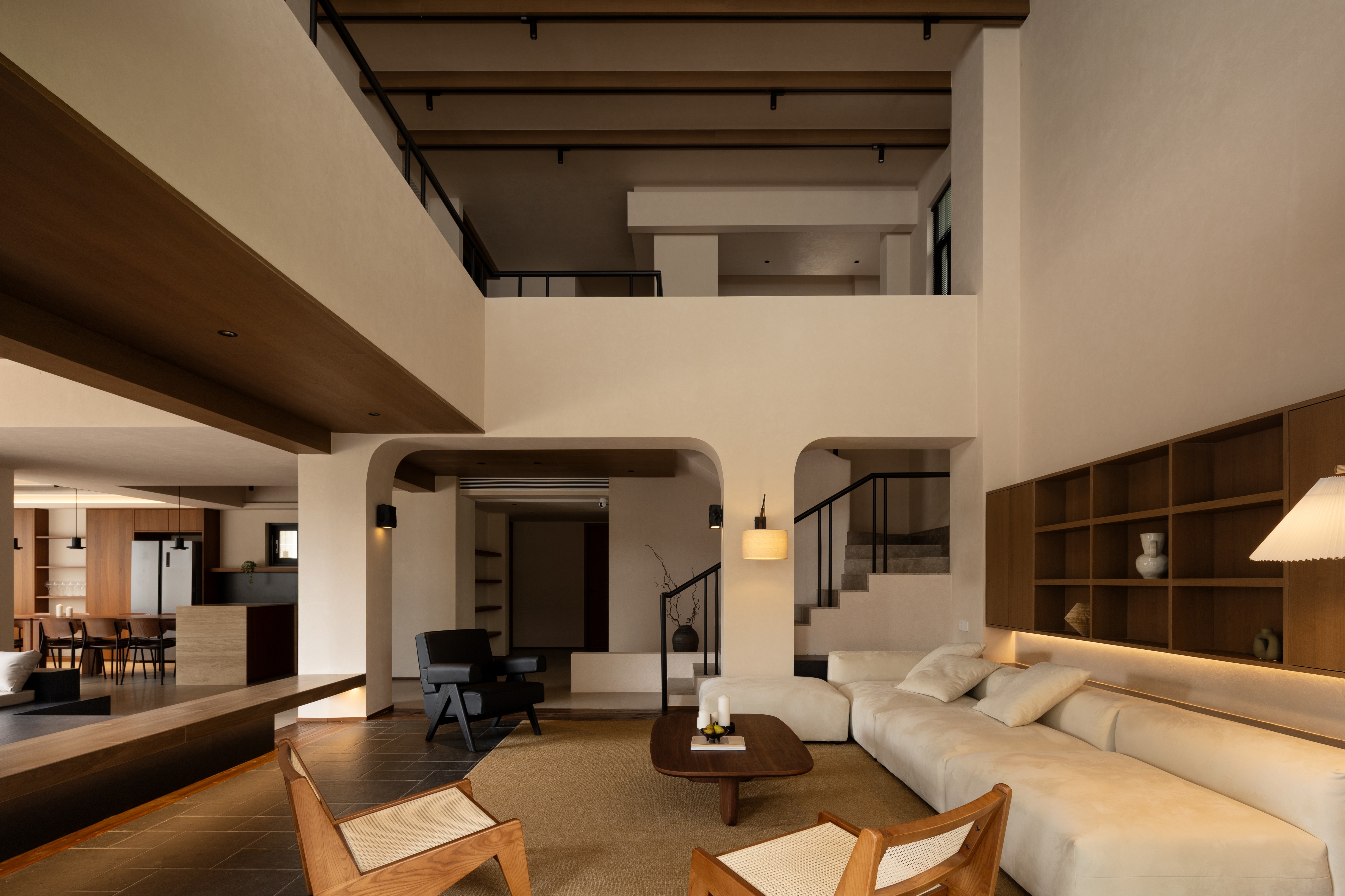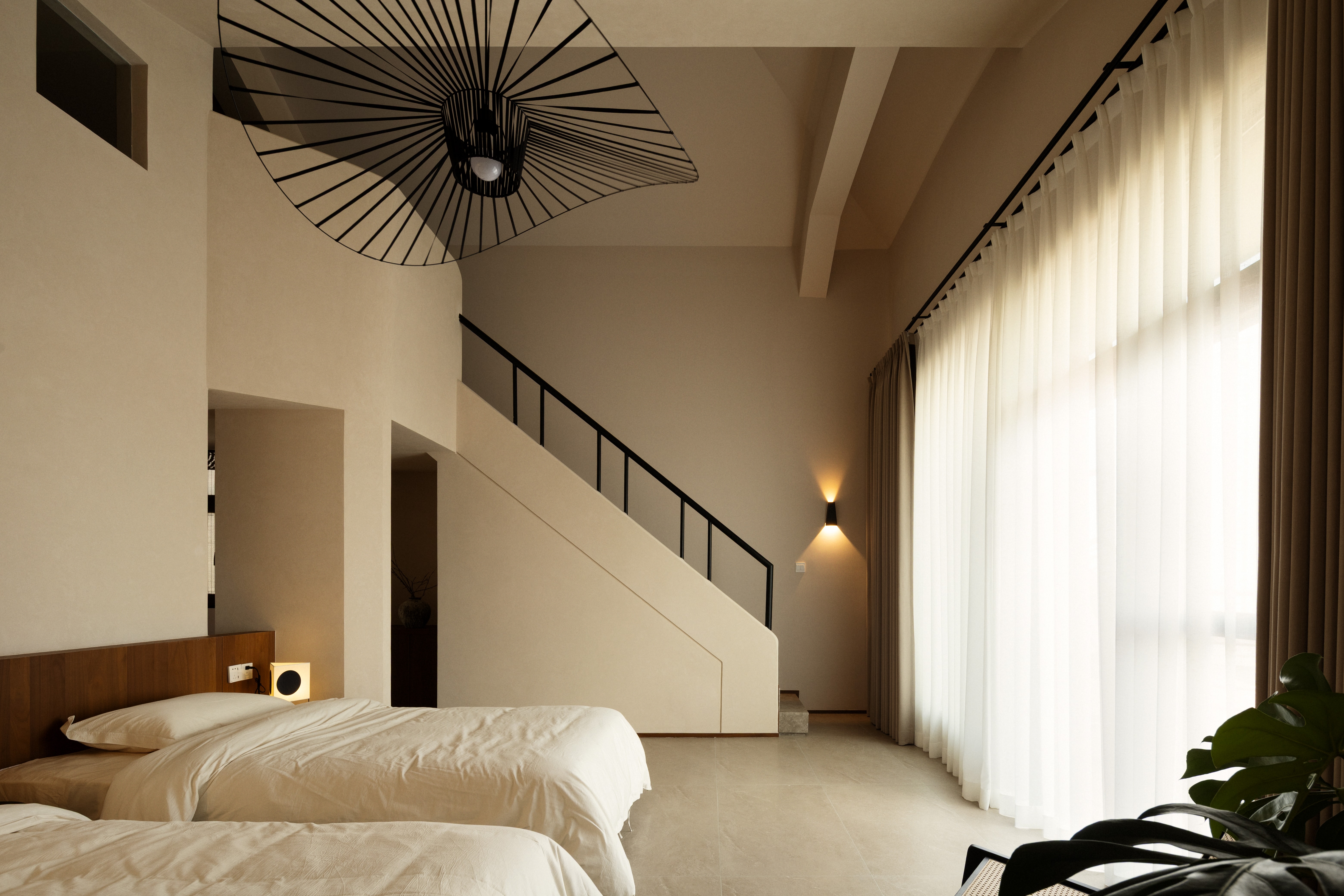 This suburban hot spring villa is a family retreat designed to strengthen bonds through nature and shared interaction. The design prioritizes freedom, ease, and connectivity. A double-height living room erases interior and exterior boundaries, while encouraging visual exchange between floors. An adjacent sunken tea area opens to the hot spring and garden, offering individual retreat without isolation. Intimate lounges on the first and second floors provide gathering spaces, and top-floor bedrooms include child-friendly lofts. The varied areas accommodate engagement with nature, social connection, or solitude. Natural materials and layered views compose a tranquil escape from urban routine.