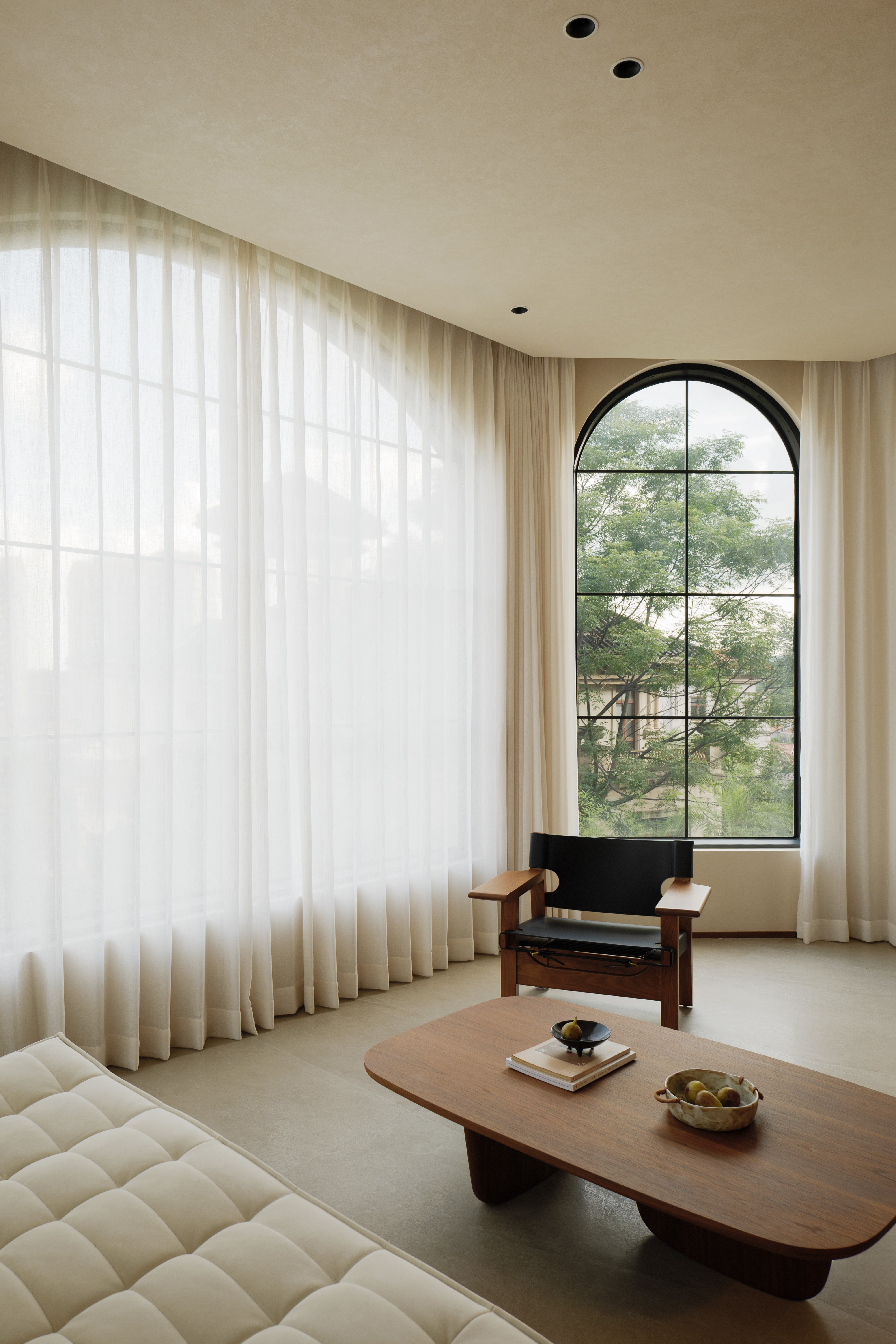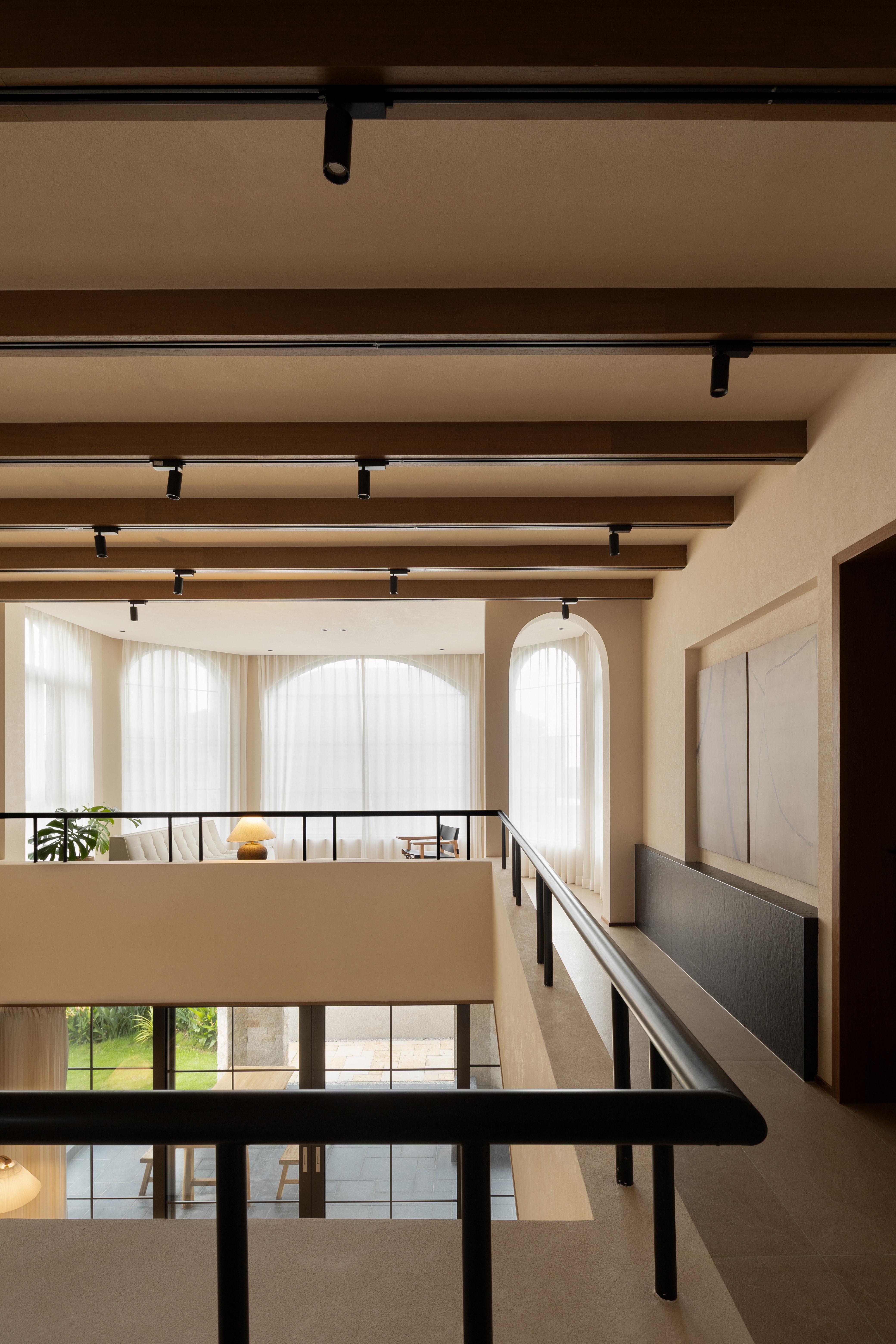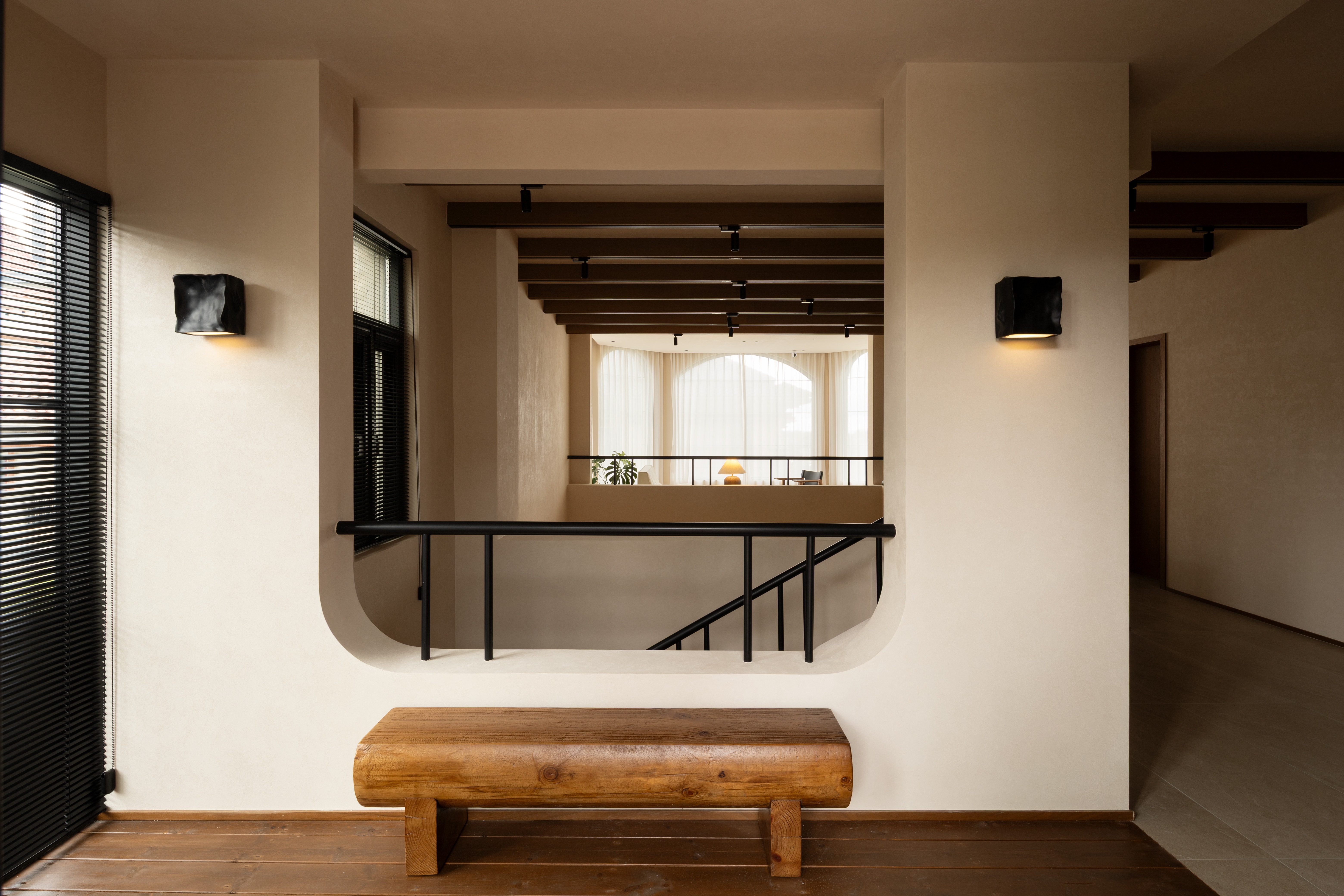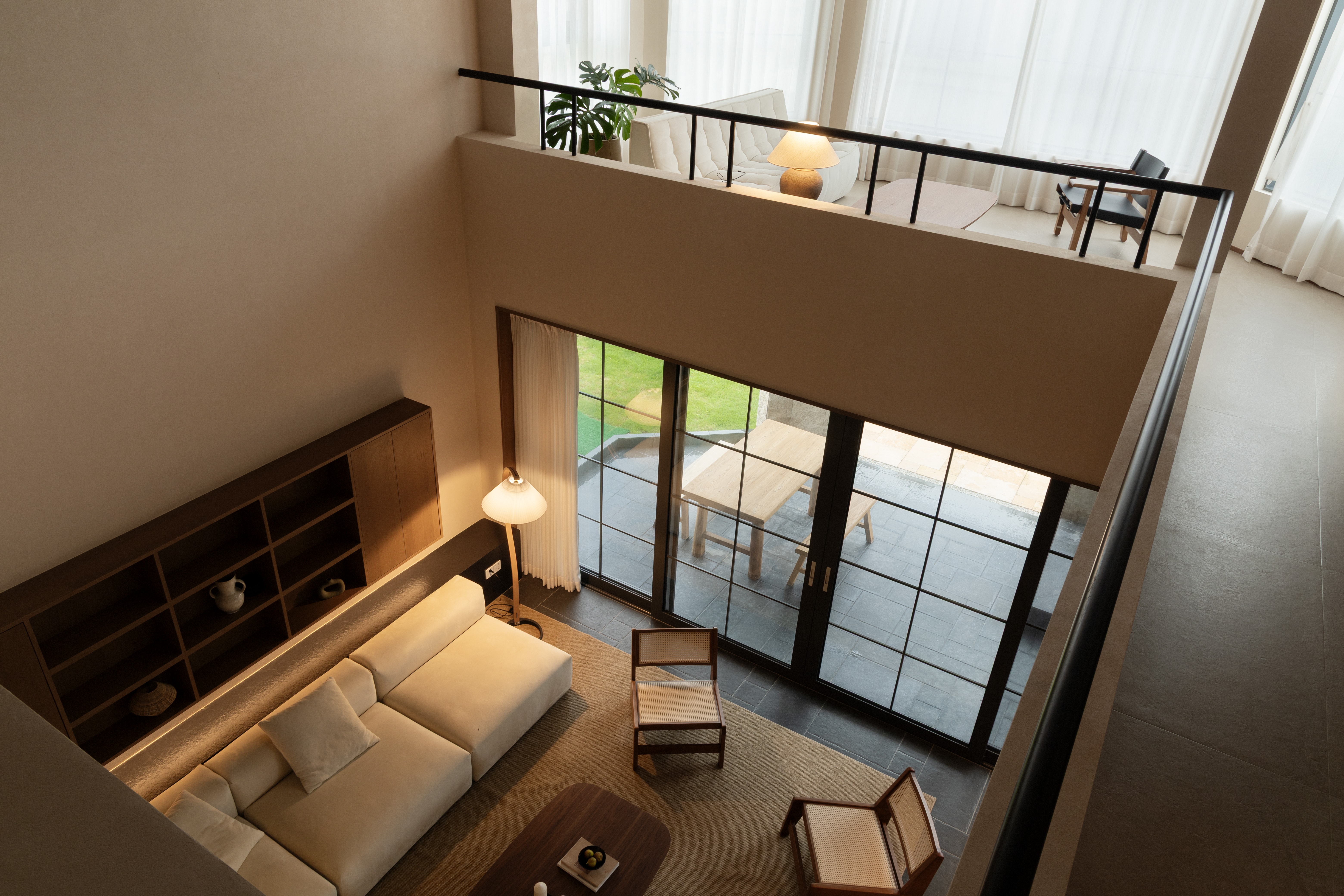 This suburban hot spring villa is a family retreat designed to strengthen bonds through nature and shared interaction. The design prioritizes freedom, ease, and connectivity. A double-height living room erases interior and exterior boundaries, while encouraging visual exchange between floors. An adjacent sunken tea area opens to the hot spring and garden, offering individual retreat without isolation. Intimate lounges on the first and second floors provide gathering spaces, and top-floor bedrooms include child-friendly lofts. The varied areas accommodate engagement with nature, social connection, or solitude. Natural materials and layered views compose a tranquil escape from urban routine.