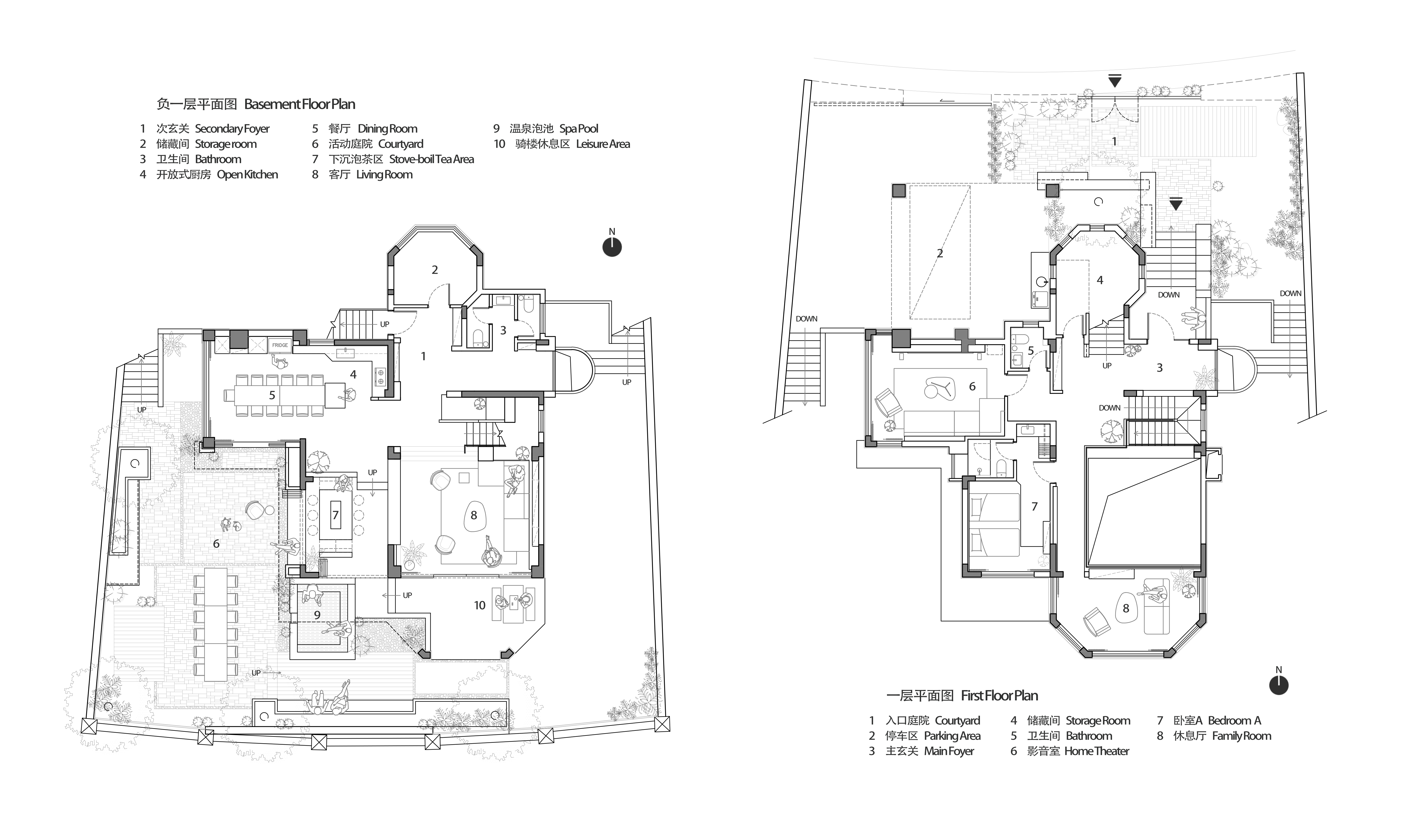 项目为近郊的一栋温泉别墅,是业主为家人打造的度假居所。业主希望让入住者获得与自然更亲近的体验,享受度假氛围的同时也能让人们在真实的交互中增进亲情和友情。设计以自在、松弛、交流为理念,将休憩的场景融入每一处空间。通高的负一楼客厅在打破室内外界限的同时为上下层的人提供更多的交互机会。客厅边下沉泡茶区与户外温泉泡池和院子紧密相连,即便喜好不同,大家也能找到各自享受的一角,却又能瞥见家人的身影或隔空互唤一声。一楼的小休息厅和二楼的家庭厅提供了小聚活动的场所。顶楼的卧室还带有供孩子玩耍的阁楼。不同尺度的空间极大丰富了每个人的选择:或亲近自然,或享受相聚,亦或感受平静。自然的材质配合移步易景的体验,享受有别于城市生活的空间诗意。