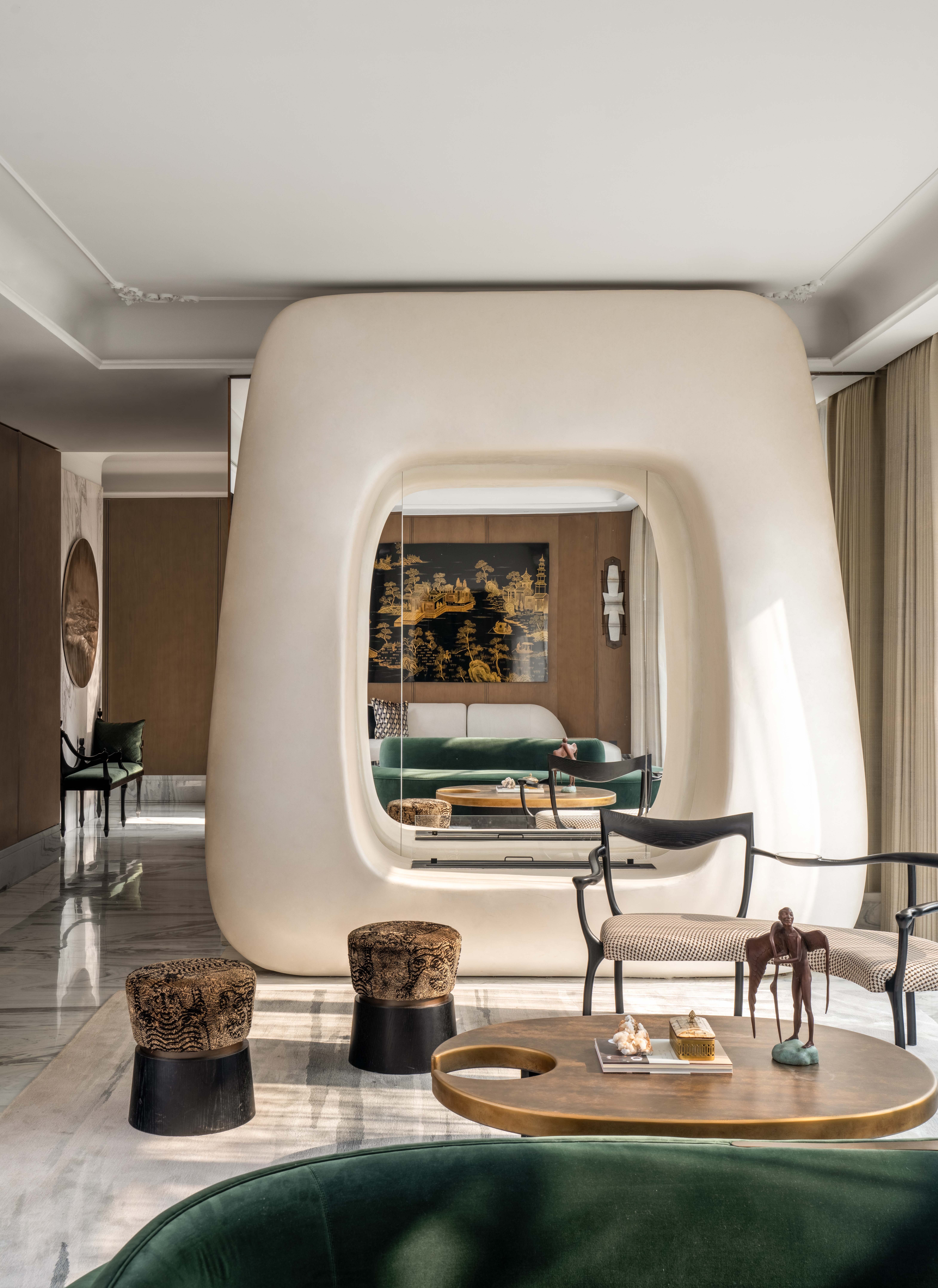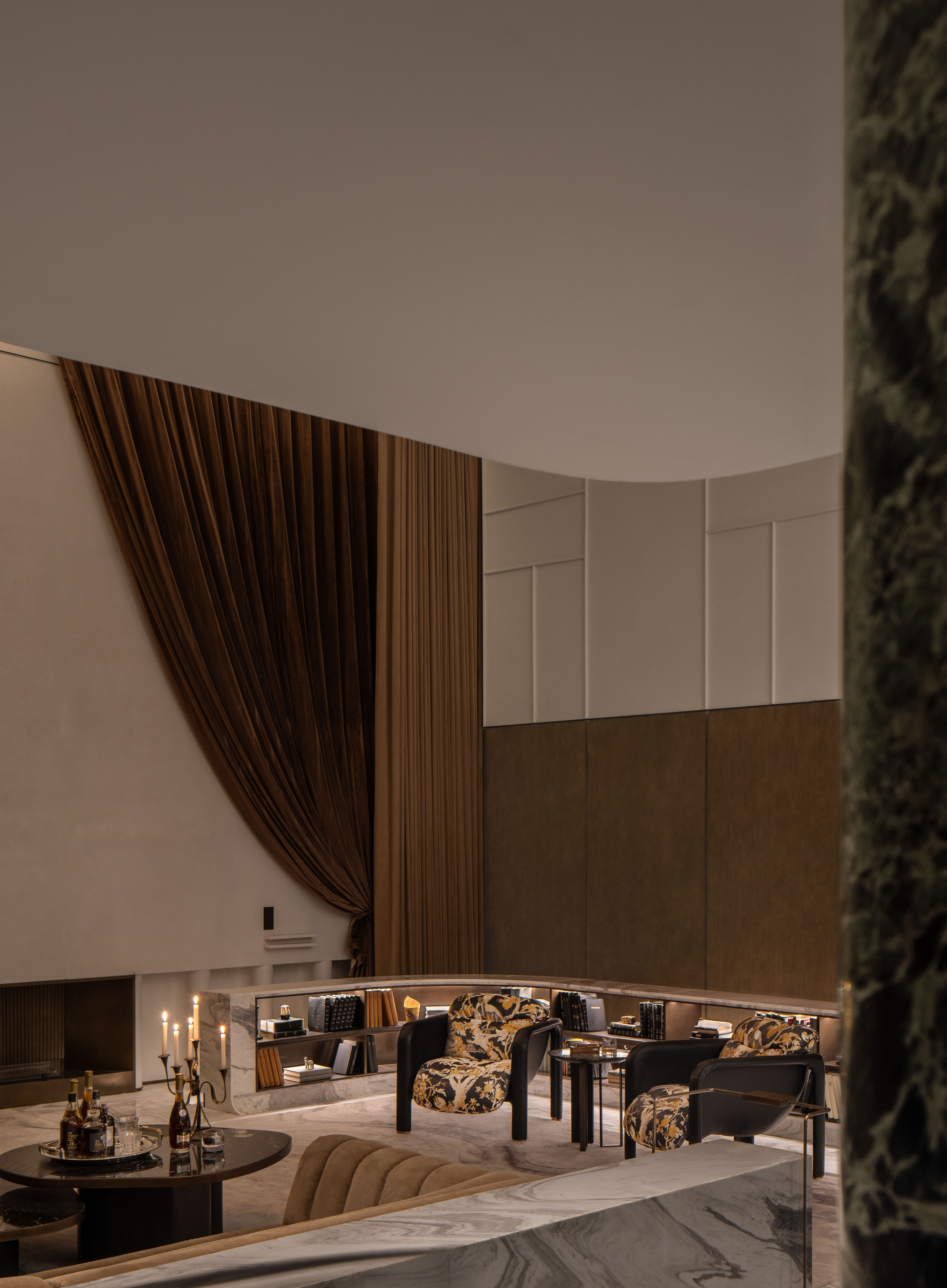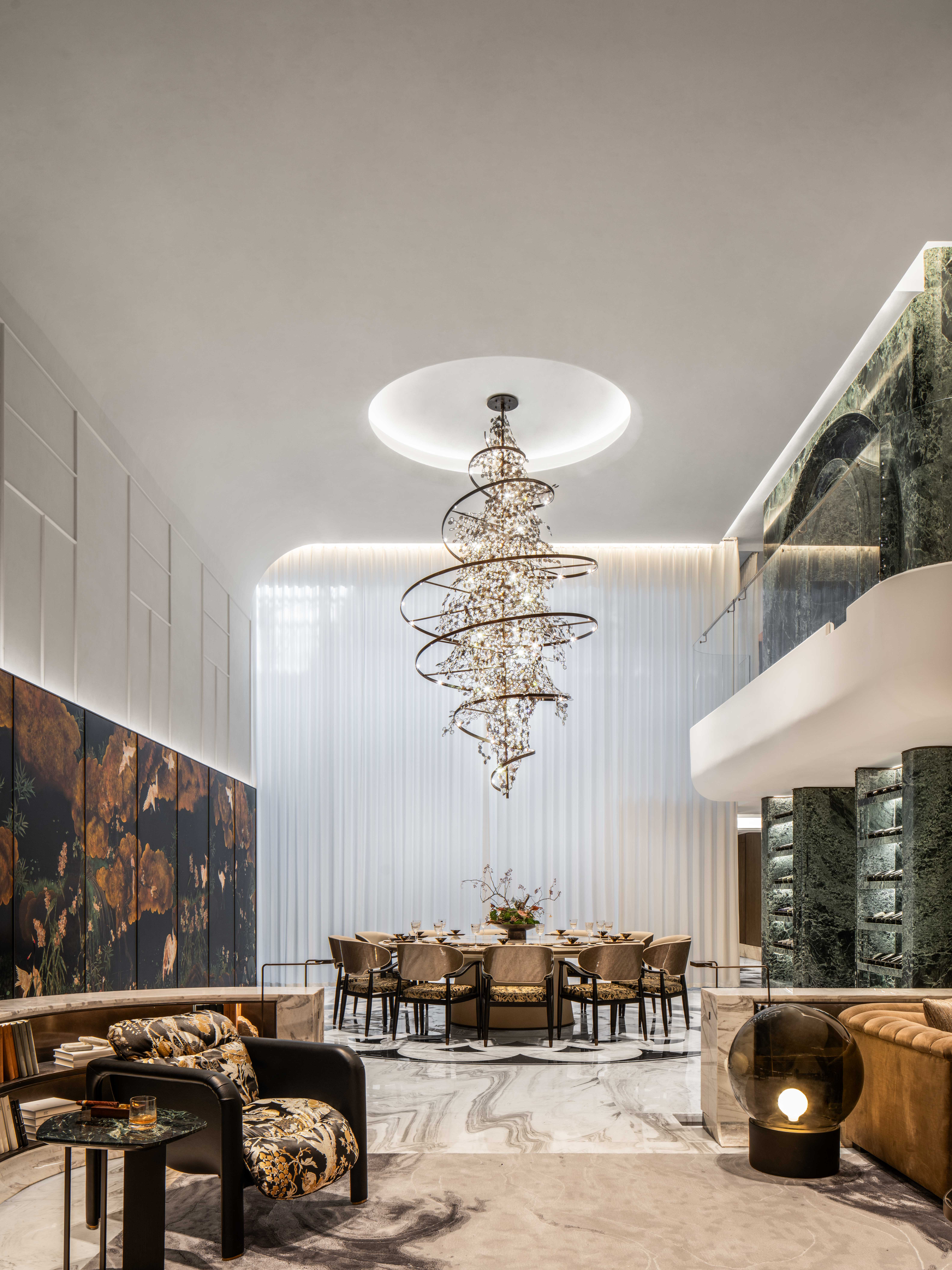 从南京“江南佳丽地,金陵帝王州”的皇都恢弘气韵出发,到秦淮河畔“长干延属,飞甍舛互,其居则有高门鼎贵,魁岸豪杰”的圈层重现,再至宋代文人雅士“儒林华国古今同,吟咏飞毫醒醉中”的生活写照。随着设计行进,铺陈金陵人文艺术、风雅生活,溯源华夏古都的诗意栖居,结合“东境西韵”的核心理念,定制“万物千古,凝于一室”专属于当代新贵的极奢生活圈层。