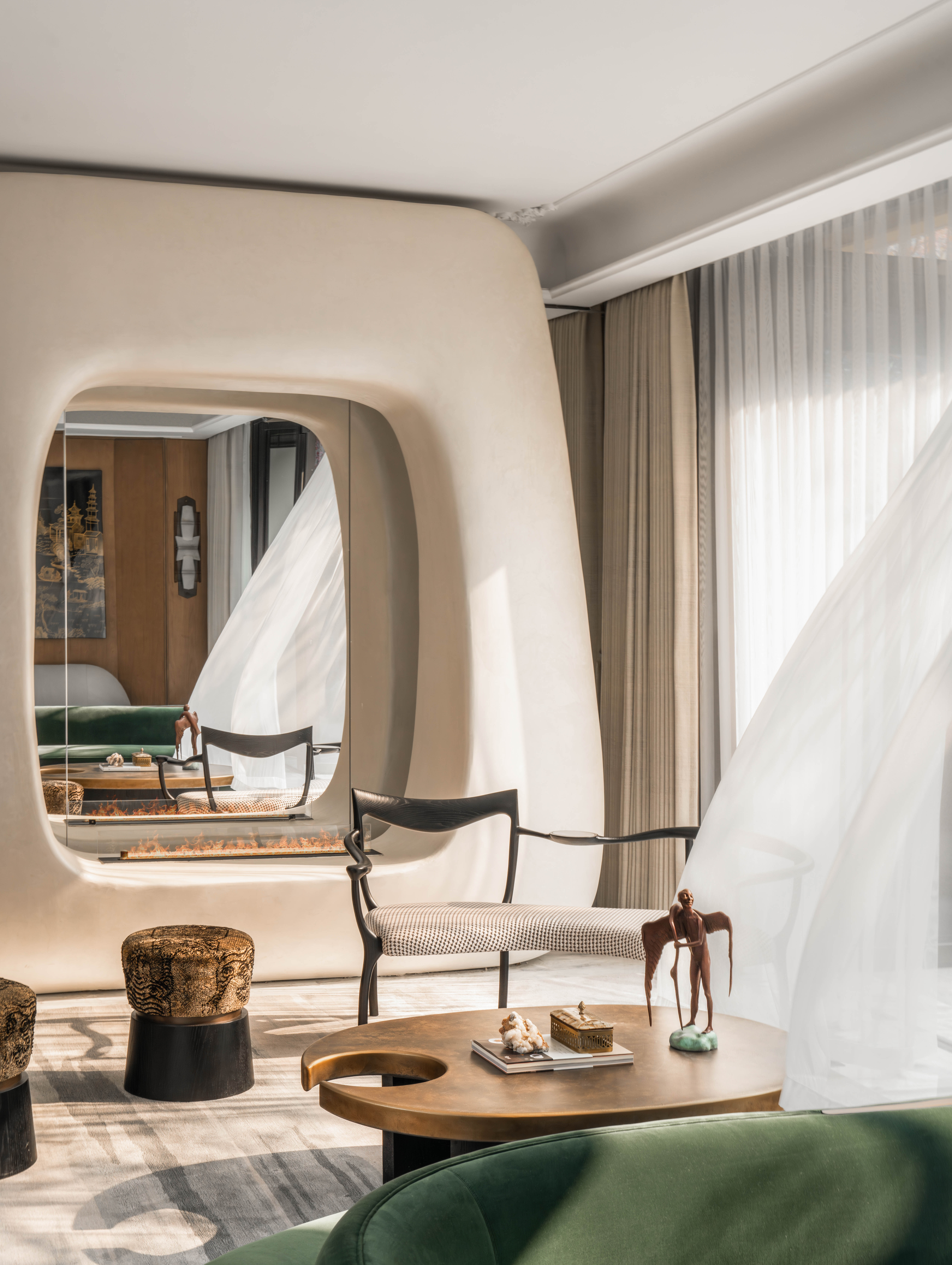 From Nanjing, "Jiangnan beautiful land, Jinling Emperor State" the grand imperial charm of the emperor, to the Qinhuai River, "long dry extended belong, fly 甍, its home is high gate Ding GUI, the bank of the hero" the circle of reappearance, and then to the Song Dynasty literati "Ru Lin Hua country ancient and modern, chanting Fei hao wake drunk" life portrayal. With the progress of the design, Jinling humanistic art, elegant life, tracing to the poetic dwelling of the ancient capital of China, combined with the core concept of "east border and west rhyme", customized "all things through the ages, condensing in one room" exclusive to the contemporary new rich extremely luxurious life circle.